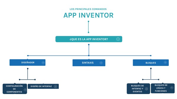 App Inventor usa bloques gráficos para programar, representando eventos, controles, y componentes visuales. Los bloques condicionales y de flujo manejan la ejecución. Puedes manipular datos y crear funciones sin escribir código. Es una interfaz visual simplificada para construir aplicaciones.