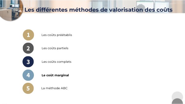 C’est une méthode d’analyse complémentaire qui permet de déterminer l’optimum économique (niveau de production où le profit total est maximum) et de prendre des décisions sur le niveau de production ou l'opportunité d'accepter une commande. Cependant cette politique de production d’unité supplémentaire peut être mal interprétée par la clientèle car elle peut amener à des soldes dégriffés ainsi que l’attente de de réductions pour acheter.