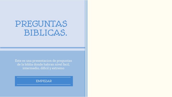 Este es una presentacion de preguntas de la biblia donde habran nivel facil, intermedio, dificil y extremo