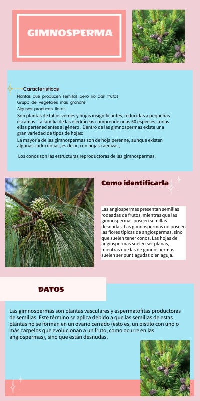 Son plantas de tallos verdes y hojas insignificantes, reducidas a pequeñas escamas. La familia de las efedráceas comprende unas 50 especies, todas ellas pertenecientes al género . Dentro de las gimnospermas existe una gran variedad de tipos de hojas: Los conos son las estructuras reproductoras de las gimnospermas.