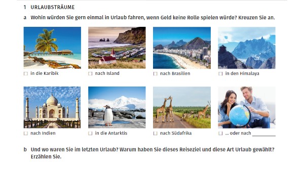 Präsentation - mein Traumurlaub in DeutschlandWie sieht dein Traumurlaub aus? Erstelle eine kleine Präsentation. Sucht Bilder, die zeigen, wo und wie du dein Urlaub am liebsten verbringen würdest. 1. Mit welchen Transportmitteln würdest du dorthin gehen? 2. Welche Sehenswürdigkeiten würdest du besuchen? 3. Was würdest du da machen? 4. Was würdest du dort ausprobieren? z.B. die lokale Gastronomie, etc. 5. Wie ist das Wetter normalerweise in der Jahreszeit deines Urlaubs?