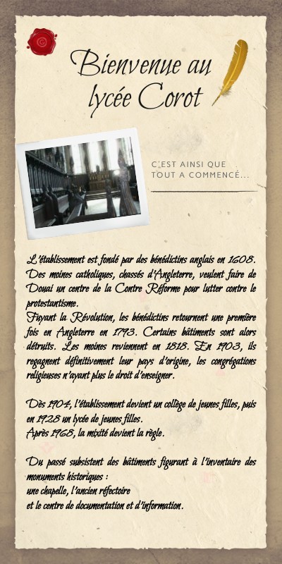 L'histoire se passe au XIXè s dans l'ancien collège anglais de Douai, qui est l'actuel lycée Corot. Un soir, Scotty, jeune élève, faisait comme à son habitude du piano dans une salle de classe, solitaire.