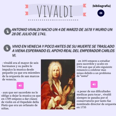 - vivaldi era el mayor de seis hermanos y su padre le impulco la musica desde pequeño ya que era miembro de la orquesta de san marcos de venecia.