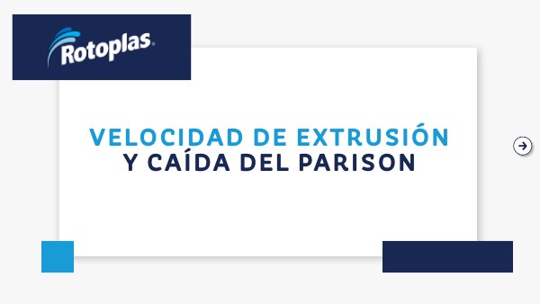 La velocidad de extrusión se refiere a la velocidad a la que el plástico fundido es empujado a través de una boquilla para formar un tubo hueco, conocido como "parison". Por otro lado, la caída del parison se refiere a la gravedad que actúa sobre este tubo de plástico, mientras desciende desde la boquilla hacia el molde donde se formará el objeto final.