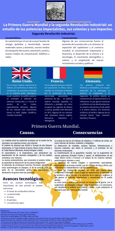 La Primera Guerra Mundial y la segunda Revolución Industrial: un estudio de las potencias imperialistas, sus colonias y sus impactos.