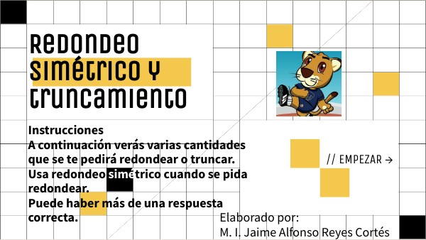 Instrucciones A continuación verás varias cantidades que se te pedirá redondear o truncar.Usa redondeo simétrico cuando se pida redondear. Puede haber más de una respuesta correcta.