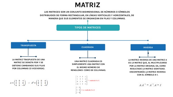 Las matrices son un conjunto bidimensional de números o símbolos distribuidos de forma rectangular, en líneas verticales y horizontales, de manera que sus elementos se organizan en filas y columnas.
