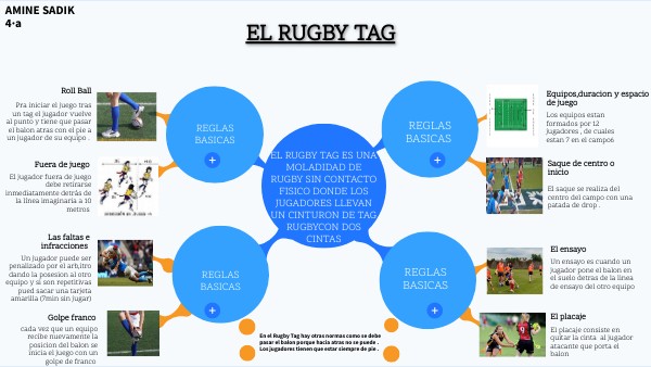 En el Rugby Tag hay otras normas como se debe pasar el balon porque hacia atras no se puede . Los jugadores tienen que estar siempre de pie .
