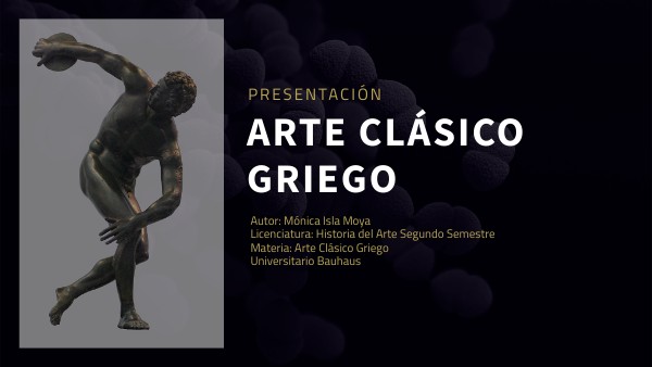 Autor: Mónica Isla Moya Licenciatura: Historia del Arte Segundo Semestre Materia: Arte Clásico Griego Universitario Bauhaus