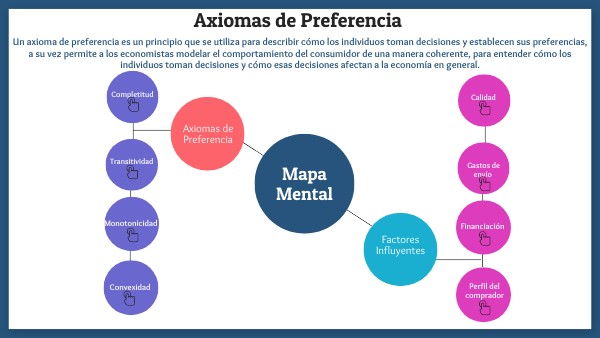 Un axioma de preferencia es un principio que se utiliza para describir cómo los individuos toman decisiones y establecen sus preferencias, a su vez permite a los economistas modelar el comportamiento del consumidor de una manera coherente, para entender cómo los individuos toman decisiones y cómo esas decisiones afectan a la economía en general.