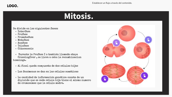 En estas diapositivas, trato de explicar las partes de las diferentes etapas de mitosis y meiosis I y II