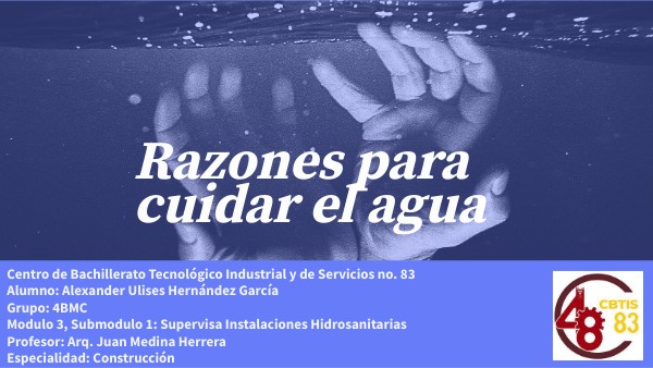 Centro de Bachillerato Tecnológico Industrial y de Servicios no. 83Alumno: Alexander Ulises Hernández García Grupo: 4BMC Modulo 3, Submodulo 1: Supervisa Instalaciones Hidrosanitarias Profesor: Arq. Juan Medina Herrera Especialidad: Construcción