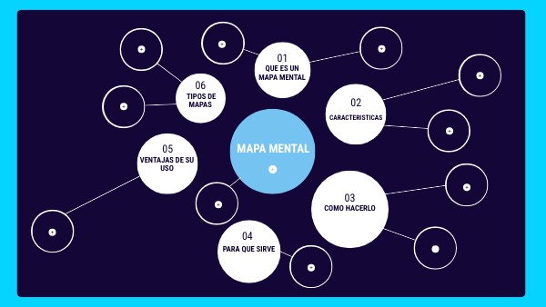 Un mapa mental es un diagrama que representa conceptos relacionados a partir de un tema principal o palabra clave. El tema principal se ubica al centro y se expande en todas direcciones con los conceptos relacionados – ideales para lluvias de ideas y organizar información de manera espontanea.