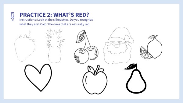 Instructions: Look at the silhouettes. Do you recognize what they are? Color the ones that are naturally red.
