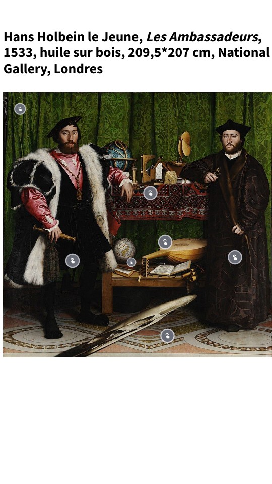 Hans Holbein le Jeune, Les Ambassadeurs, 1533, huile sur bois, 209,5*207 cm, National Gallery, Londres