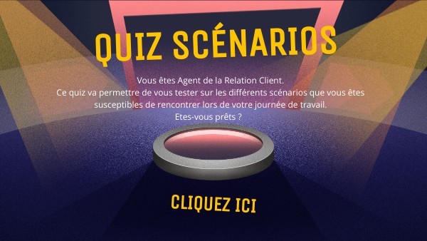 Vous êtes Agent de la Relation Client.Ce quiz va permettre de vous tester sur les différents scénarios que vous êtes susceptibles de rencontrer lors de votre journée de travail.Etes-vous prêts ?