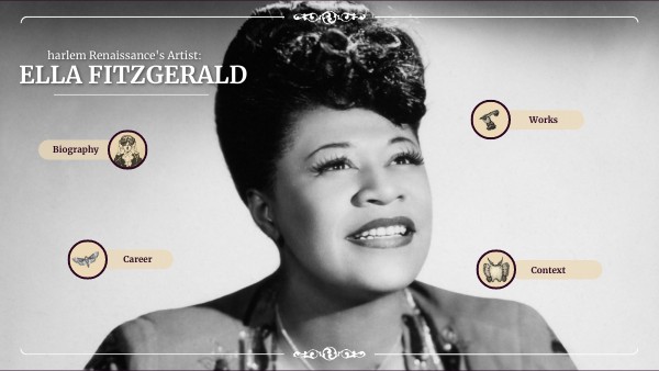 Ella Jane Fitzgerald was born the april 25th 1917 in Newport News, Virginie. Her parents divorced when she was only 2 years old. Her dad Matthew Fitzgerald, left alone his kids and his ex-wife. Her mom, Temperance, got into a new relationship and moved in 1920 at Yonkers in New York where Ella will grow up. To help her mom and her step-dad, Ella had to do many jobs but she started hanging out in jazz club at the end of the day. But in 1932, her mom and her step-dad died at the same time. So at her 15 years old, Ella had to live with her aunt. She started stealing and running away from her aunt's house. Then, she started working for the local mafia to pay some food.