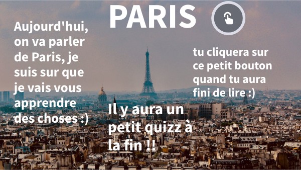 Aujourd'hui, on va parler de Paris, je suis sur que je vais vous apprendre des choses :)