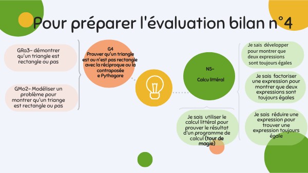Révisions évaluation bilan 4ème Pythagore-Calcul littéral