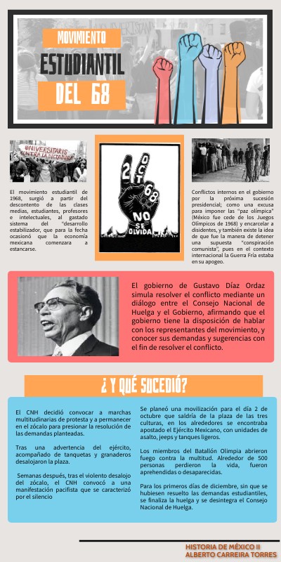 El movimiento estudiantil de 1968, surgió a partir del descontento de las clases medias, estudiantes, profesores e intelectuales, al gastado sistema del “desarrollo estabilizador, que para la fecha ocasionó que la economía mexicana comenzara a estancarse.