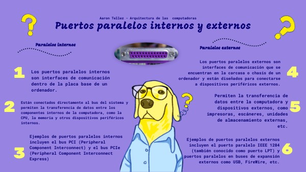 Ejemplos de puertos paralelos internos incluyen el bus PCI (Peripheral Component Interconnect) y el bus PCIe (Peripheral Component Interconnect Express)