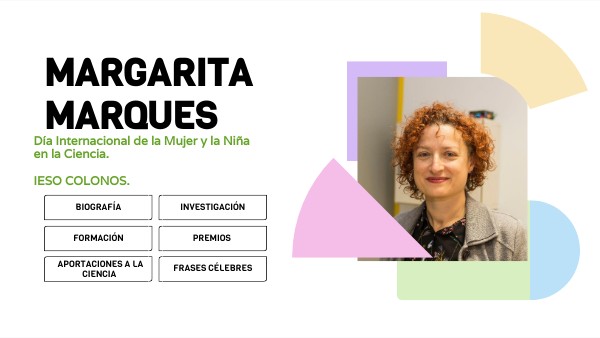 La carrera investigadora de Margarita Marqués Martínez, Margot, hay que rastrearla en el grupo de Genética Animal de la Facultad de Veterinaria de León, el Instituto de Investigaciones Biomédicas de Madrid, el Deutsches Krebsforschungszentrum (Centro Nacional Alemán de Investigaciones sobre Cáncer) de Heidelberg y el Instituto Roslin de Edimburgo (Reino Unido), donde se clonó a la famosa oveja Dolly y donde ella misma trabajó en la modificación genética de estos animales. Su periplo investigador fuera de España empieza en el DKFZ durante la realización de su Tesis Doctoral. En el verano de 1999, cuando acababa su etapa de doctorado, Margot concurrió al Programa L’Oréal-Unesco “For Women in Science”, que lleva 18 años visibilizando a las mujeres científicas españolas e incentivando la vocación por la ciencia entre las jóvenes. La bióloga molecular Margarita Salas se alzó con el Premio Internacional y Margarita Marqués Martínez consiguió la beca internacional. Gracias a ella pudo regresar a Alemania, donde participó en una línea de investigación sobre el virus del papiloma humano, implicado en el cáncer de cuello uterino. En 2003, ya de regreso en León, continuó las investigaciones iniciadas en el Instituto Roslin de Edimburgo en el entonces recién creado Instituto de Desarrollo Ganadero y Sanidad Animal de León (Indegsal). En la actualidad, Margarita Marqués es Profesor Contratado Doctor Permanente en el Departamento de Producción Animal de la Universidad de León y forma parte del grupo de investigación «Diferenciación Celular y Diseño de Modelos Celulares». El grupo se centra en el estudio funcional de los genes de la familia de p53, en particular del gen p73, tanto en procesos fisiológicos como en la patología de distintas enfermedades. Adicionalmente, aborda proyectos de desarrollo de modelos celulares de interés para empresas del sector biotecnológico. .