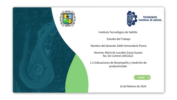 Instituto Tecnológico de Saltillo Estudio del Trabajo Nombre del docente: Edith Armendariz Ponce Alumna: María de Lourdes Garza Suarez No. De Control 23051622 1.2 Indicaciones de Desempeño y medición de productividad.