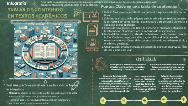 Infografía (Tablas de contenido y su uso en los textos académicos)