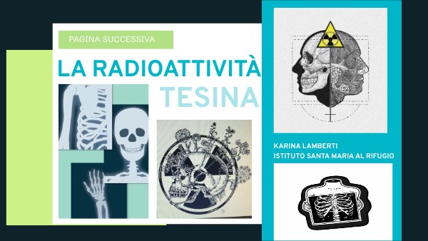 In questa tesina parlerò della radioattività, parola che secondo me non rappresenta solo una cosa scientifica, ma anche un pensiero personale ed emozioni molto forti. Ho scelto questo argomento perchè me lo sentivo mio, come se fosse una cosa che posseggo proprio per le radiazioni positive che mi emana e mi trasmette.