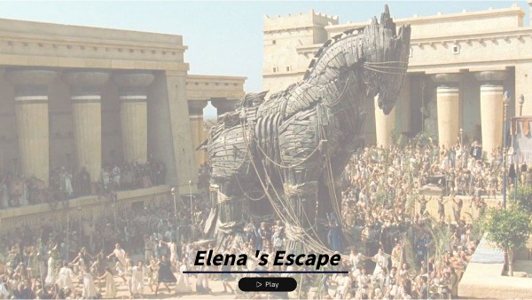 La città di Troia è sotto assedio, i Greci grazie ad uno stratagemma, sono riusciti ad entrare nelle mura della città, riducendola in fiamme. Elena è nasconda all' interno della città. Sei un combattente dell' esercito di Agamennone incaricato di trovarla .Riuscirai a trovarla? Per poter riuscire nell' impresa dovrai visitare in ordine crescente gli ambienti della città di Troia, portando via con te gli indizi situati all'interno Gli ambienti da te visitati nascondono insidie, indovinelli ai quali dovrai rispondere correttamente per poter avanzare e visitare gli altri. Ricorda che ogni risposta corretta ti permetterà di visitare l'ambiente successivo, la risposta sbagliata ti farà ritornare al punto di partenza..