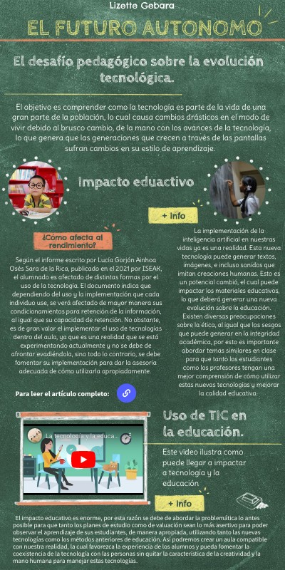 Según el informe escrito por Lucía Gorjón Ainhoa Osés Sara de la Rica, publicado en el 2021 por ISEAK, el alumnado es afectado de distintas formas por el uso de la tecnología. El documento indica que dependiendo del uso y la implementación que cada individuo use, se verá afectado de mayor manera sus condicionamientos para retención de la información, al igual que su capacidad de retención. No obstante, es de gran valor el implementar el uso de tecnologías dentro del aula, ya que es una realidad que se está experimentando actualmente y no se debe de afrontar evadiéndola, sino todo lo contrario, se debe fomentar su implementación para dar la asesoría adecuada de cómo utilizarla apropiadamente.