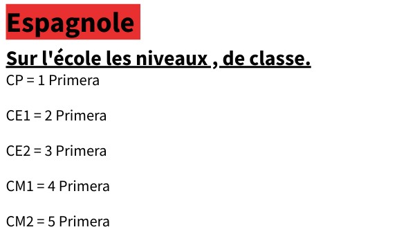 6éme = 6 Primaria 5éme = 1ESO 4éme = 2ESO 3éme = 3 ES