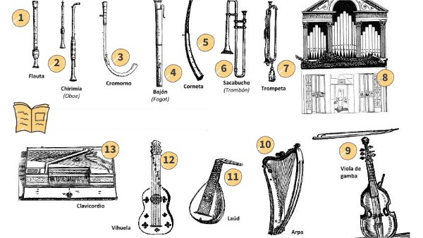Como resultado de la experimentación y la fusión con otras culturas, aparecieron muchos instrumentos de cuerda pulsada, como diversos tipos de laúd, theorbos, violines y violas, panderetas, cascabeles, instrumentos de viento de bronces, como las flautas y flautines.