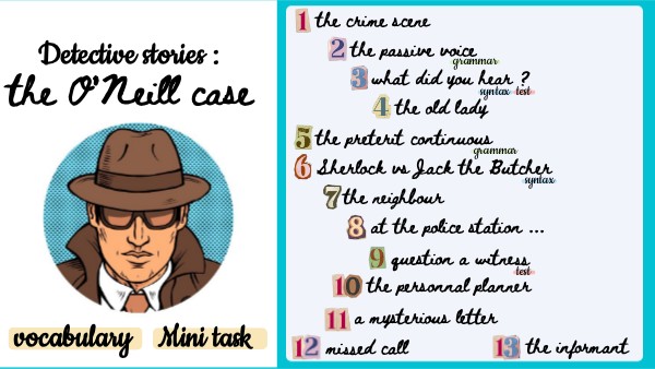 In pairs , write 5 sentences in your copybook. > Recap what you know about the crime. * use the mindmap * use the preterit tense