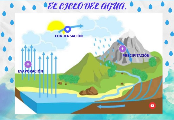 Esta imágen ofrece la descripción de las tres etapas del ciclo del agua, al igual que un video de youtube para reforzar la información.