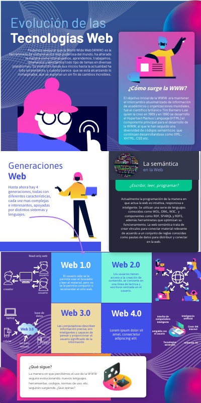 Podemos asegurar que la World Wide Web (WWW) es la herramineta de comunicación más poderosa del mundo, ha alterado la manera como interacuamos, aprendemos, trabajamos, diseñamos y abordamos todo tipo de temas en diversas plataformas. Su evolución desde sus inicios hasta la actualidad ha sido sorpendente, y cuando parece que se está alcanzando lo inimaginable, aún se exploran un sin fin de cambios increíbles.