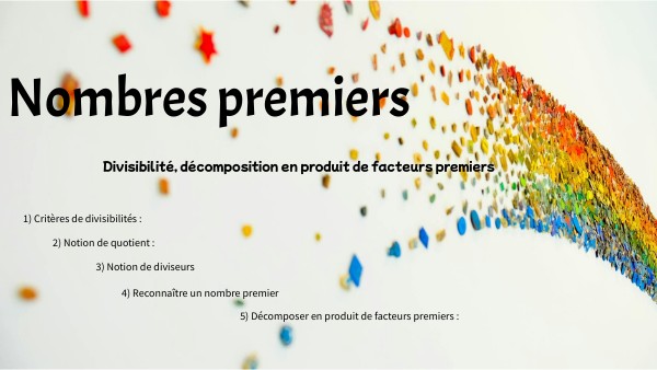 Tout entier naturel supérieur ou égal à 2 est premier ou produit de nombres premiers. Lorsqu’on écrit un nombre entier comme produit de nombre premier, on dit qu’on décompose cet entier en produit de nombre premier.