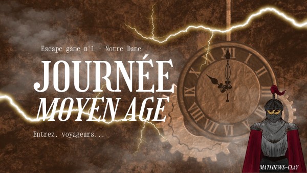 Bienvenue, jeunes voyageurs temporels de Notre-Dame ! Aujourd'hui, vous vous apprêtez à entreprendre un périple extraordinaire à travers le temps, vers une époque riche en histoires, en mystères et en aventures : le Moyen Âge ! Dans cette quête épique, vous aurez l'opportunité unique de plonger au cœur de cette période fascinante, où chevaliers vaillants, châteaux majestueux et légendes envoûtantes ne demandent qu'à être découverts. Votre mission, si vous l'acceptez, sera de voyager dans le passé et de découvrir les secrets du moyen âge. Le Moyen Âge n'attend que vous, jeunes explorateurs, pour révéler ses secrets les mieux gardés vous devez voyager dans le temps. Pour trouver la potion magique qui vous fera voyager au moyen âge il faut accomplir votre premier misson. Complète cet escape game numérique et trouve le code secret qui sera à donner à Dame Matthieu de la Clé qui saura vous guider dans votre périple. Que l'aventure commence !