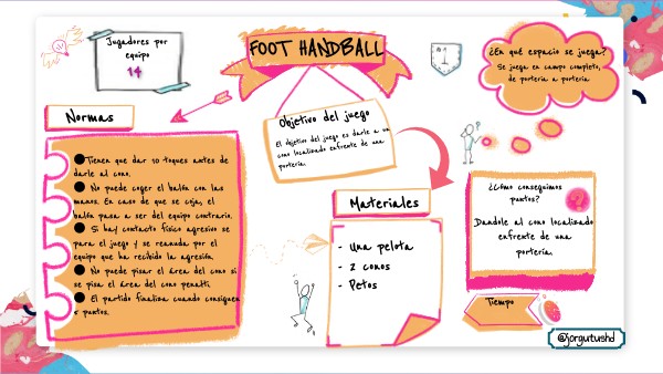 ●Tienen que dar 10 toques antes de darle al cono. ● No puede coger el balón con las manos. En caso de que se coja, el balón pasa a ser del equipo contrario. ● Si hay contacto físico agresivo se para el juego y se reanuda por el equipo que ha recibido la agresión. ● No puede pisar el área del cono si se pisa el área del cono penalti. ● El partido finaliza cuando consiguen 5 puntos.