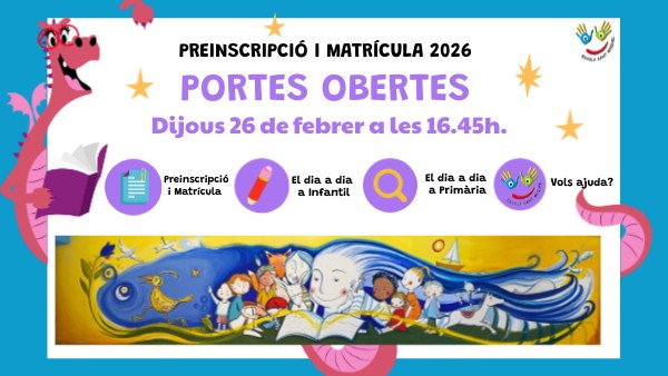 Presentació de la sol·licitud: del 4 al 18 de març 2026 Codi centre: 08016094 Matrícula: del 22 de juny al 30 de juny del 2026.
