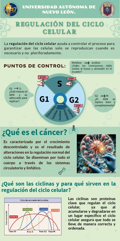 La regulación del ciclo celular ayuda a controlar el proceso para garantizar que las celulas solo se reproduzcan cuando es necesario y no ploriferadamente.