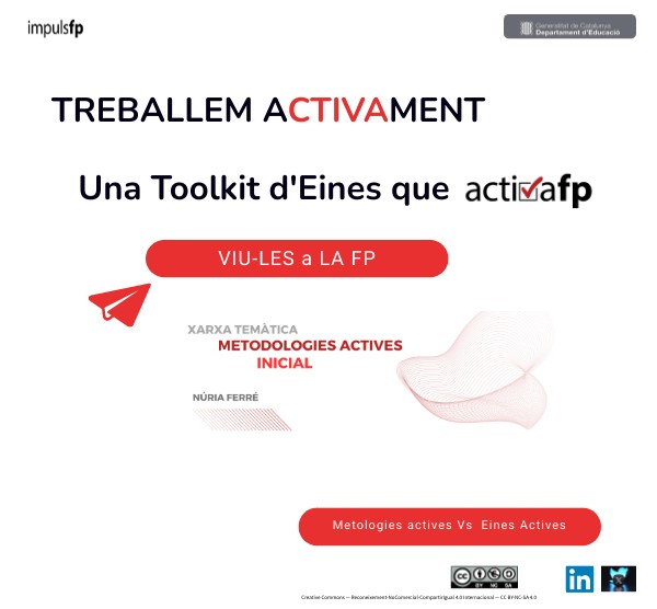 Treballar activament en un context educatiu suposa implicar la participació activa dels estudiants en el seu propi procés d'aprenentatge, però no necessàriament implica l'ús de metodologies actives com projectes, aprenentatge basat en problemes, aprenentatge servei, entre d'altres. Treballar activament pot incloure tasques com la lectura crítica, l'estudi independent, la reflexió personal, la participació en discussions, entre altres activitats que fomenten el pensament crític i l'aprenentatge autònom, sense dependre exclusivament de mètodes didàctics interactius o col·laboratius. Et deixem moltes eines, que NO, no són METODOLOGIES, són eines per ACTIVAR. La incorporació de metodologies actives pot enriquir significativament l'experiència d'aprenentatge, promoure el compromís i la motivació dels estudiants i millorar els resultats educatius, tintegrant el treball actiu en un marc més ampli d'estratègies pedagògiques diverses. El primer pas cap a les metodologies actives, implica ACTIVAR les aules amb eines i recursos, per a sistematitzar-ho a posteriori en una metodologia pedagògica.