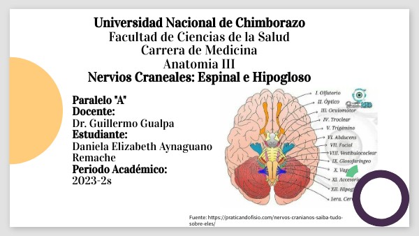 Universidad Nacional de Chimborazo Facultad de Ciencias de la Salud Carrera de Medicina Anatomia III Nervios Craneales: Espinal e Hipogloso