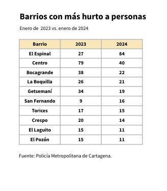Barrios con más hurto a personas