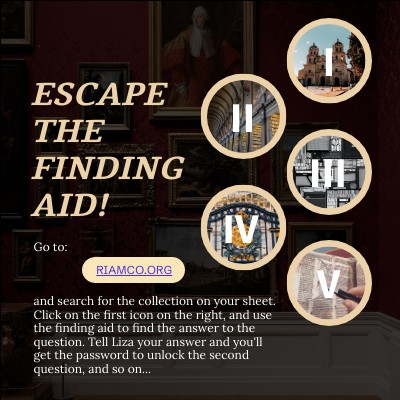 Go to: and search for the collection on your sheet. Click on the first icon on the right, and use the finding aid to find the answer to the question. Tell Liza your answer and you'll get the password to unlock the second question, and so on...
