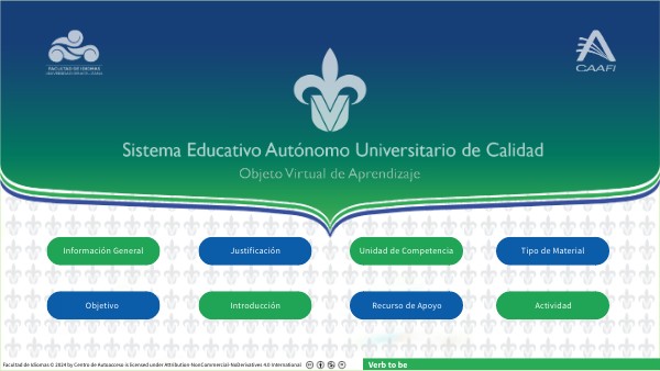 Tema: The use of verb to be Experiencia Educativa: Inglés Programa Educativo: Licenciatura en Lengua Inglesa Región / Campus: Xalapa Creado por: Elizabeth Guadalupe Aguirre Sánchez Fecha de creación: 12/feb/24 Revisado por: Dra. Elida Sánchez Cruz Fecha de revisión: 05/mzo/24 Actualizado por: Fecha de actualización: