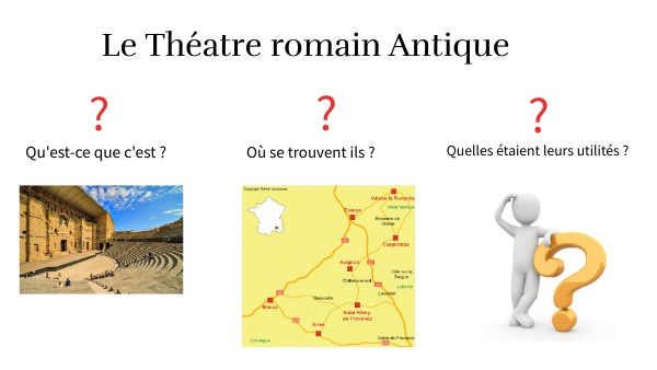 Définition : Un théâtre romain est un édifice public antique où étaient données des représentations de pièces de théâtre latin, durant l'époque romaine. ↓