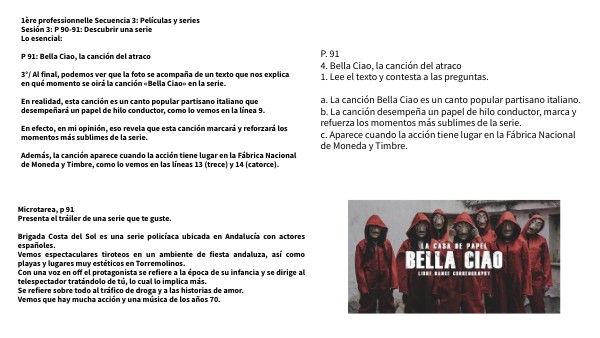 P 91: Bella Ciao, la canción del atraco. Sesión 3. Secuencia 3. 1 PRO