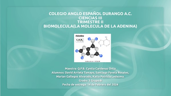 Colegio Anglo español Durango A.C.Ciencias iii Trimestre ii biomolecula(la molecula de la adenina)