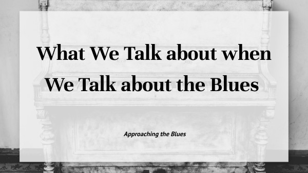 Black southern blues people, given the economic and social challenges arrayed against them, figured out pretty quickly that wallowing in despair—whining—just wasn’t an effective long-term strategy. They complain, to be sure, but they do so in a context that facilitates a spirit of creative resistance. The blues ethos acknowledges the power generated when emotional pain is annealed with a self-mockery that wards off descent into outright, immobilizing depression. The sadness of the blues, according to Langston Hughes, “is not softened with tears but hardened with laughter,” and that word “hardened” is important. Spiritual toughness is part of the blues ethos. Never, ever, ever, ever give up. Even when you give up, do so only as long as you need to. Then pick yourself up and get cracking. [...]The blues ethos knows all this. Those who embody the blues ethos have the wisdom and resilience, the strength of character, to respond to bad luck by setting transformative possibilities in motion. [...] Blues songs traffic in suffering. Ralph Ellison memorably called the blues “an impulse to keep the painful details and episodes of a brutal experience alive in one’s aching consciousness, to finger its jagged grain, and to transcend it, not by the consolation of philosophy but by squeezing from it a near-tragic, near-comic lyricism.” But the blues ethos, the philosophy of life that sustains blues musicians and other blues people, prefers to acknowledge pain in order to evade suffering, whenever possible. See it, say it, sing it, share it. Get it out, by all means. Don’t deny the pain, or hide from it. But don’t wallow in it, either. Use harsh humor—near-tragic, near-comic–to kick it away. Use stoic persistence to get past it. With luck, you’ll leave it in your rearview mirror. Or not. But it’s worth a try.
